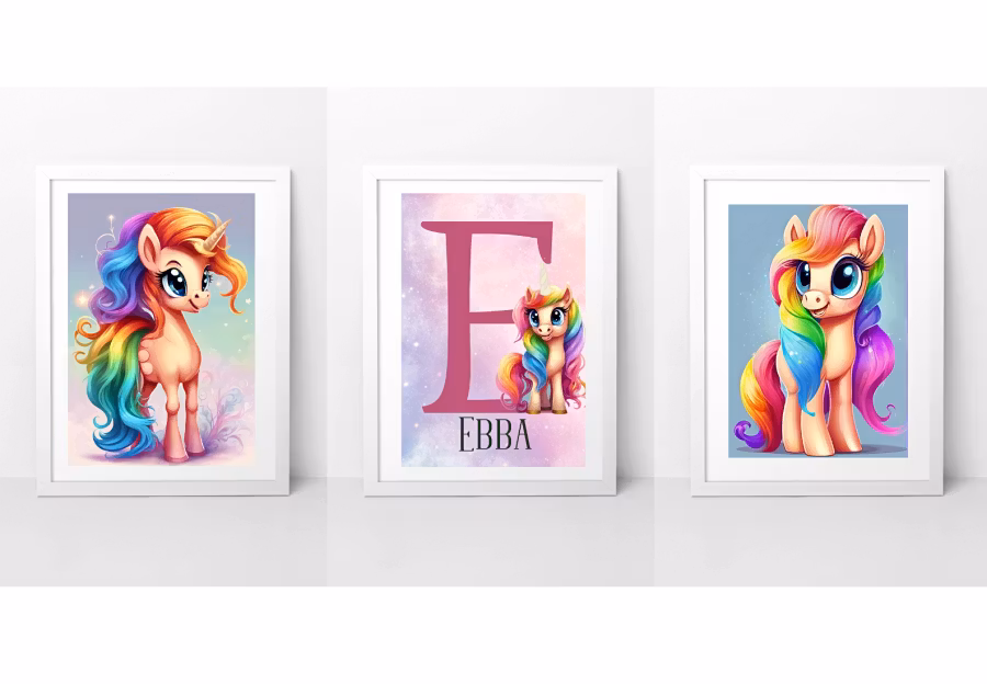 Förvandla ditt barns rum till en magisk plats med vårt färgglada enhörningsset! Dessa livfulla tryck är inte bara en fröjd för ögat, utan de bär även ditt barns namn, vilket gör dem unika och personliga. Perfekt för både barnrum och förskolor, detta set kommer garanterat att inspirera fantasin och glädja små hjärtan.