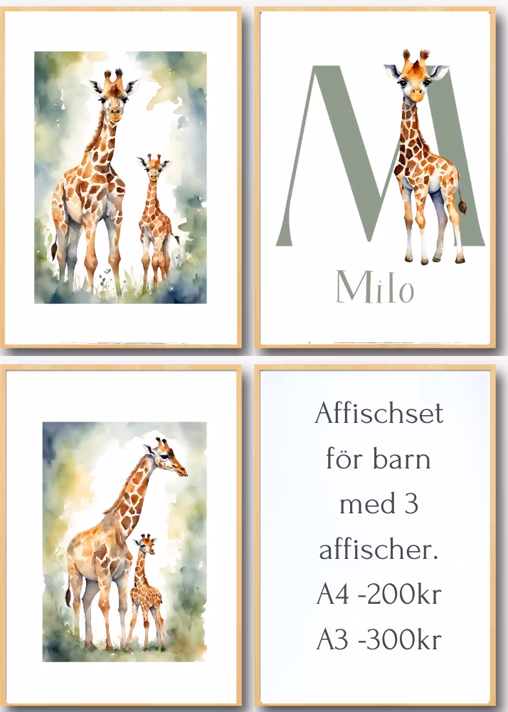 Den här kollektionen erbjuder unika och stilfulla affischer som ger liv åt väggarna i barnrummet.Unik design: Giraff, så den skapar en charmig och elegant känsl