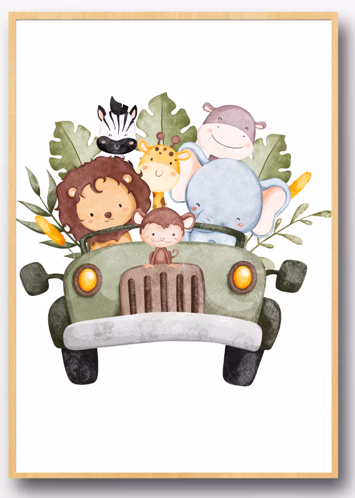 Utforska världen av söta personliga väggkonst för barn - Barnaffischer - Safari med detta högkvalitativa barnaffischset! Setet innehåller 3 unika mönster, var och en med de sötaste djuren. Priserna är per styck och kan köpas styckvis.